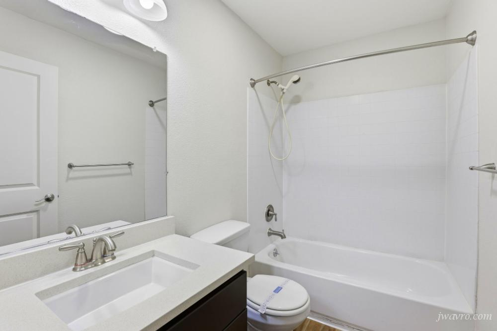 ~ Remodeled bathroom with vanity sink and shower/tub combo