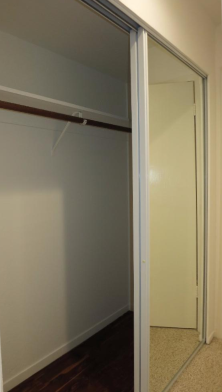 Great closet space with an additional large hall closet in the hall next to the fully remodeled bathroom with a shower over tub and granite counter.