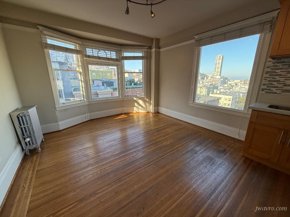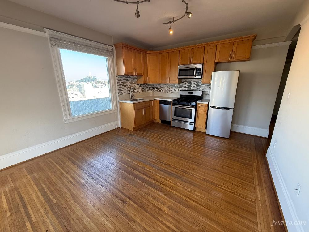 Sunny 1 bedroom corner renovated unit available soon! Beautifully remodeled kitchen, with stainless steel appliances (stove/oven, microwave, fridge, dishwasher) Hardwood Floors and carpet. large hall closets provide for ample storage space! The unit is airy, with good window exposure, and charming features Building is professionally managed, has onsite manager as well, and has beautiful San Francisco charm throughout Centrally located and close to all public transportation - Transit score 100 Within walking distance to North Beach, Financial District , Russian Hill, Downtown - Walk score 99 Artie Kramer DRE 01218968 C 415-290-7080. No laundry in building.Photo's of similar unit. One parking spot avail.