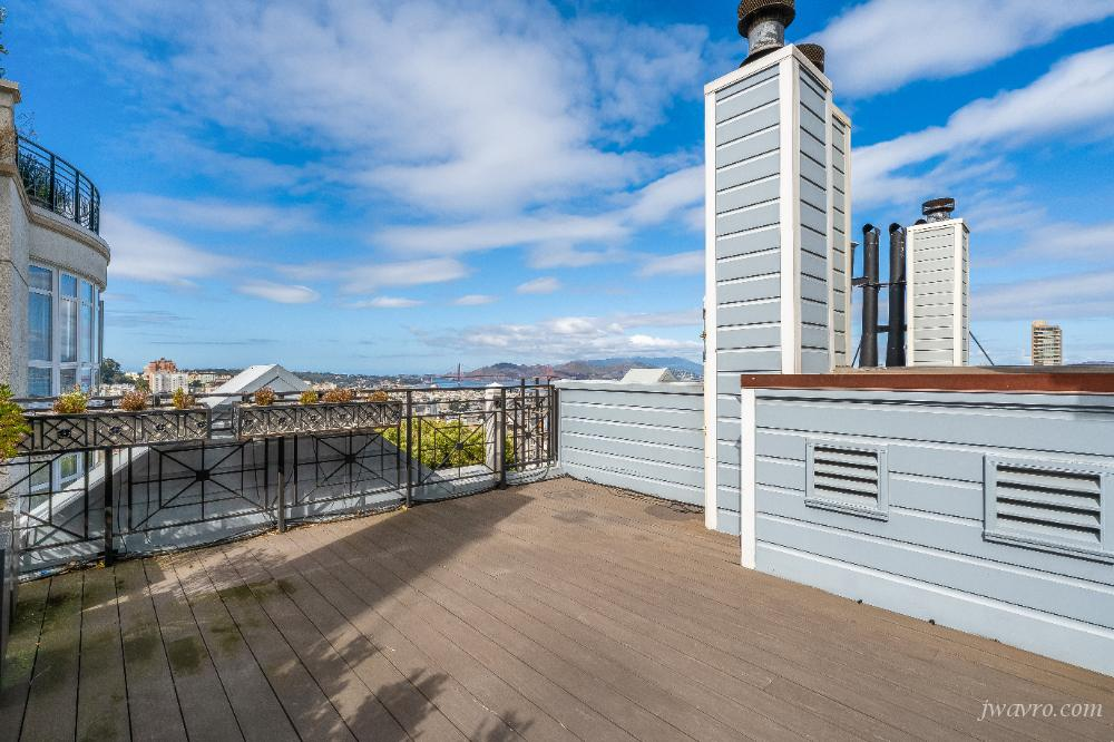- Expansive roof deck with panoramic Bay and Golden Gate Bridge views