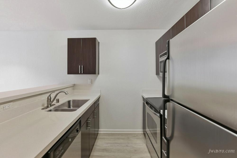 ~ Remodeled kitchen with stainless steel appliances including dishwasher and built-in microwave