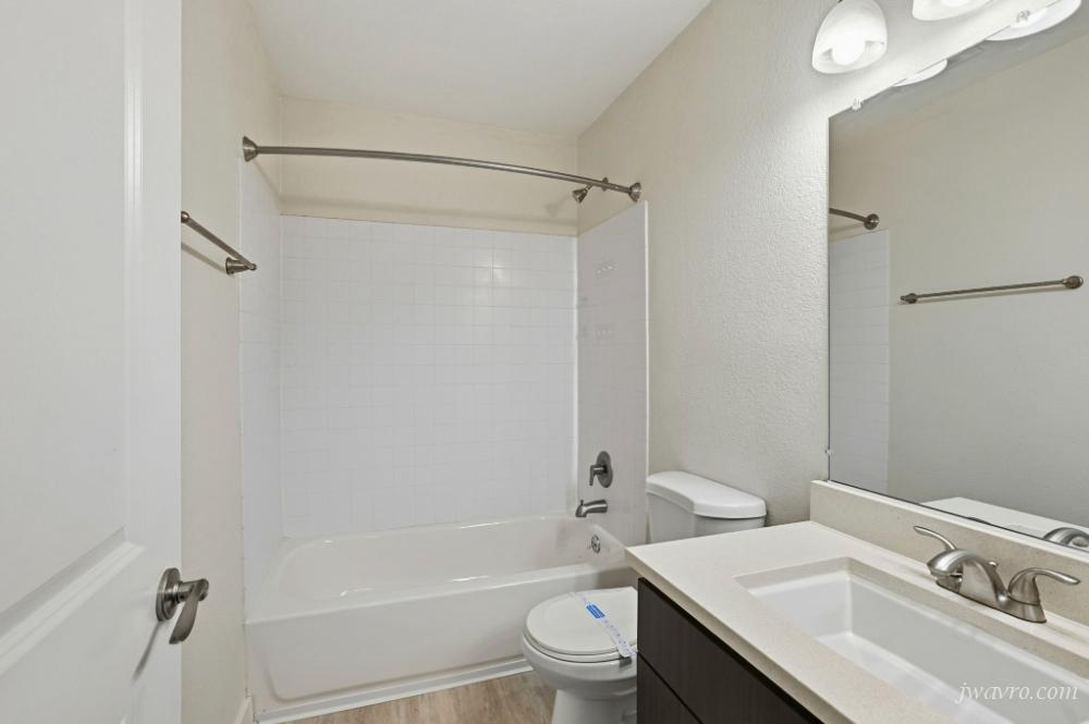 ~ Remodeled bathroom with vanity sink and shower/tub combo