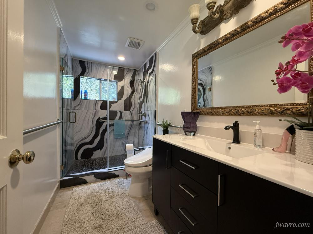Completely updated and remodeled 5 bedroom, 4 bath home. Features include chef's kitchen with large island, newer appliances, and commercial size refrigerator/freezer, formal living and dining rooms, separate family/media room on lower level with kitchenette, en-suite primary with oversized soaking tub, 4 full remodeled bathrooms, laundry room, 2 car garage, patios/seating area off both front and backyard. Great house for comfortable living and entertaining.